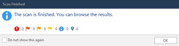 - When the scan is completed, and the Invicti Standard window is in the background, a Scan Finished information dialog is displayed.