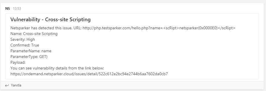 This topic explains how to configure Invicti Enterprise to send a detected vulnerability to Microsoft Teams.