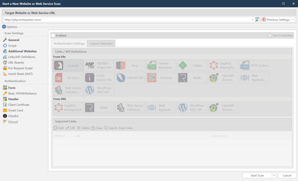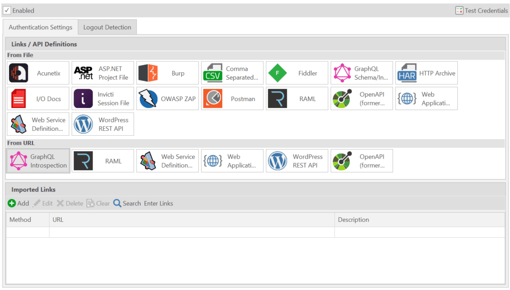 (See Importing links and API definitions for information on how to import links for additional websites in InvictiStandard.)