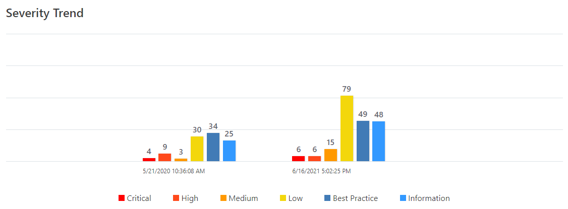 - Invicti displays the results chart, so you can gain an overview of how the security state has evolved over time and whether previously detected vulnerabilities have been fixed.