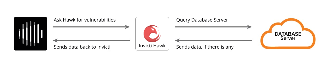 - Next, the Invicti scanner queries the Hawk server, which checks with the database server for the hashed record.