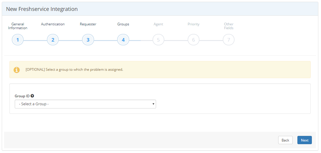 - In the Group step, select an option from the Group ID drop-down, if required.