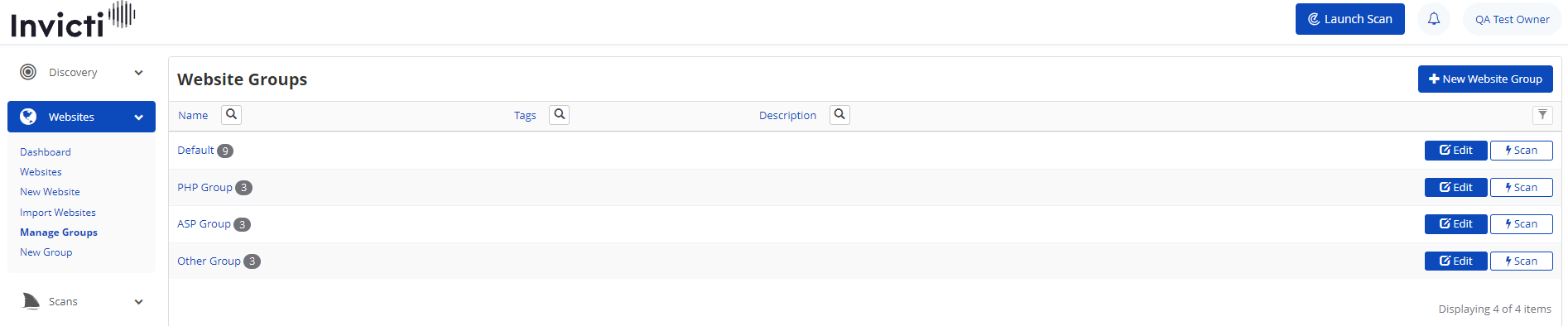 - In Splunk, the Website Group and Website fields are optional. (These values can be found on the Website Groups page in Invicti Enterprise.)
