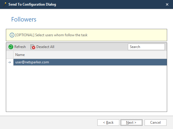 - If required, select an assignee, and click Next. The Followers step is displayed.