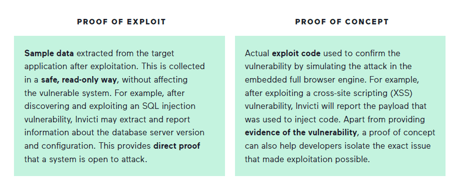 So far, we’ve seen that false positives can be a lot more than an inconvenience, and if they get out of hand, they can seriously affect the entire development pipeline. But how do you get rid of them? Let’s step back and think about this. A false positive is reported when a tool mistakenly suspects a certain kind of vulnerability. To go from suspicion to certainty, you need proof that the vulnerability really exists – and can be exploited. So why not create a solution that can deliver this proof by automatically exploiting suspected vulnerabilities? This is exactly the approach taken by Invicti with its Proof-Based Scanning technology.
