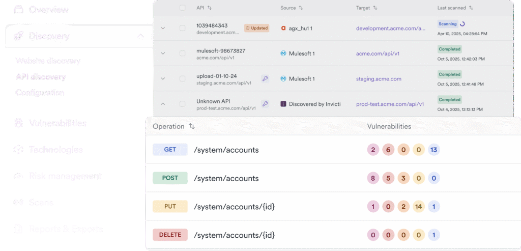 Invicti scans REST, SOAP, gRPC, and GraphQL APIs with the same depth and accuracy as web apps—validating vulnerabilities with proof. Documented or not, your APIs get full coverage, automatically.