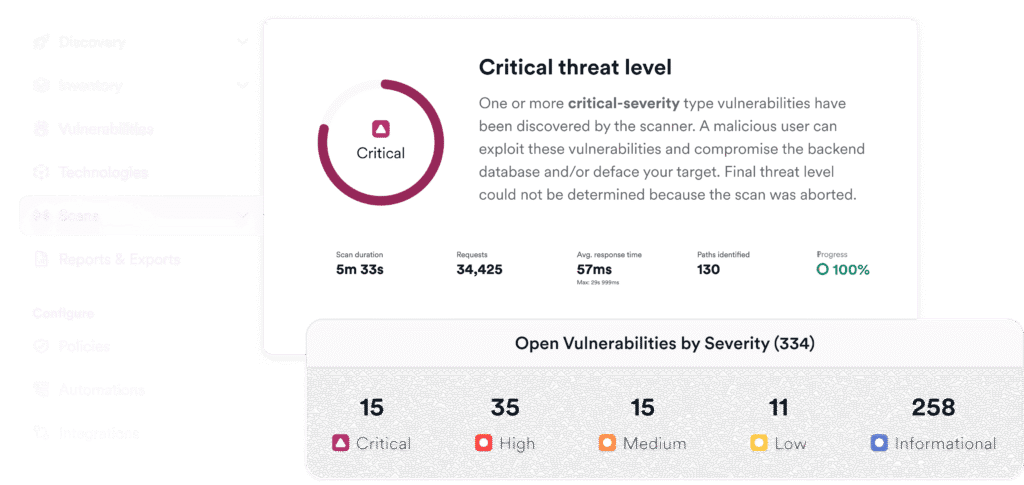 Scans your websites, apps, and APIs to detect vulnerabilities with 99.98% accuracy.