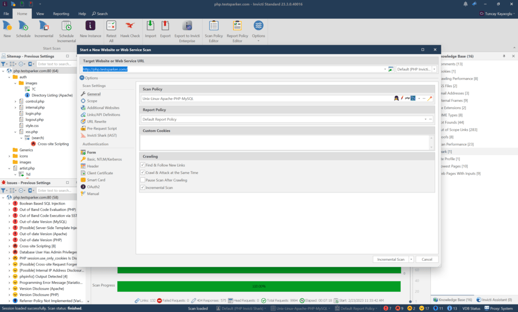 Invicti lets you scan web applications immediately, by selecting the default scan settings.