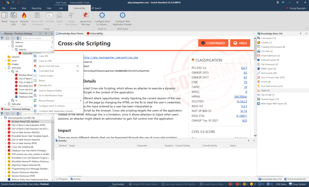 For further details, see Invicti Assistant, Overview of Scanning, Overview of Scan Policies, and Scheduling Scans.
