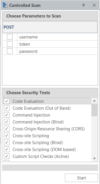 - Or, in Choose Security Tests, select the specific vulnerabilities you want to scan