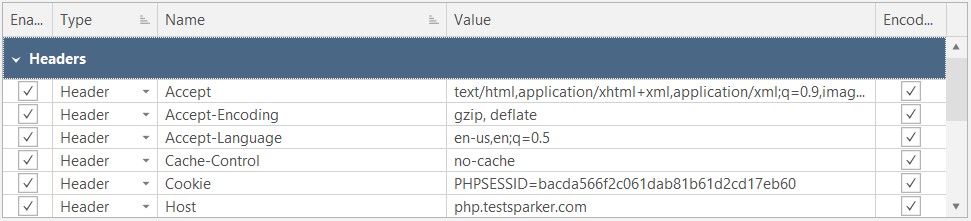 - If the checkbox in the Encoding column is checked for a header or parameter, it means that the value you entered is encoded and will be sent as it is