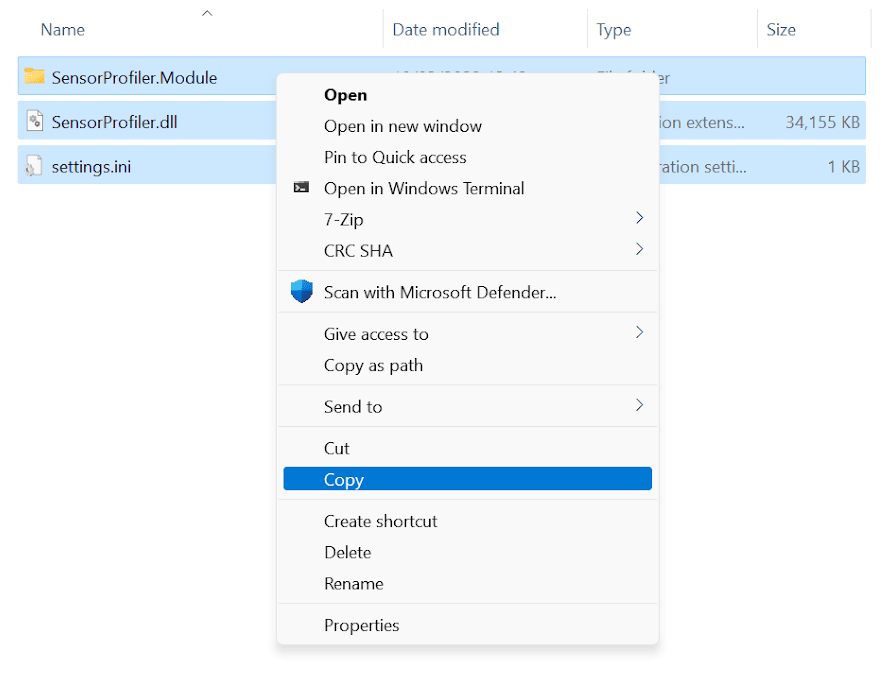 - Select all the items inside the subfolder, right-click on them, and select Copy.