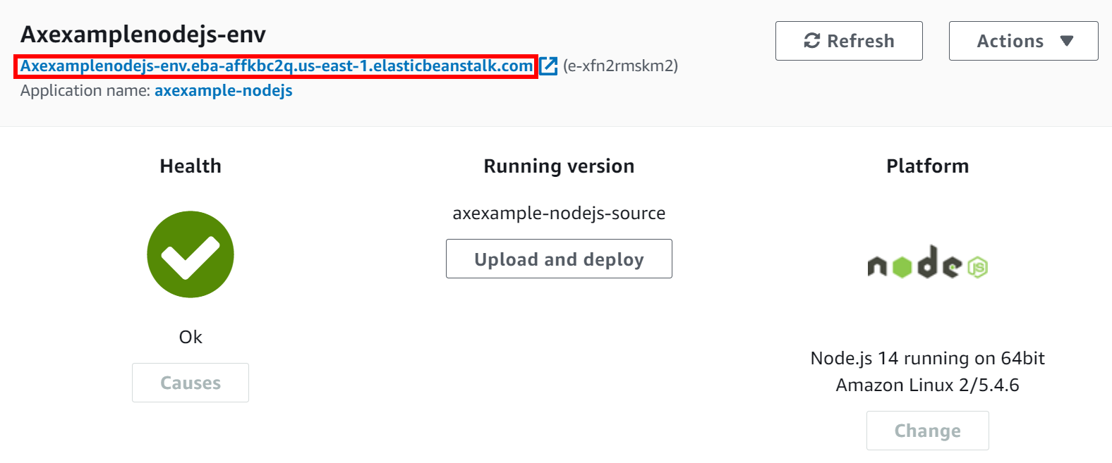 - Take note of your environment’s new URL which was created automatically by AWS Elastic Beanstalk:
