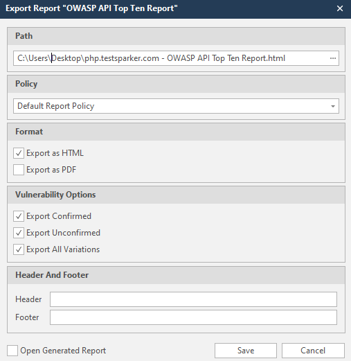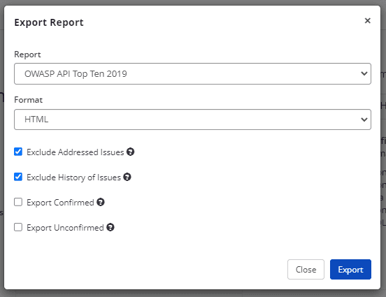 - Export Confirmed: When selected, the report will include confirmed vulnerabilities.