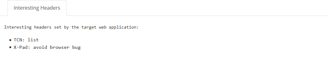 Invicti collects a list of all the unusual or customized HTTP headers during a security scan of the target web application. This information can help security professionals reveal more information about the target web application and the environment in which it runs. This information is also very beneficial for QA teams, as it helps them discover any legacy or unused components.