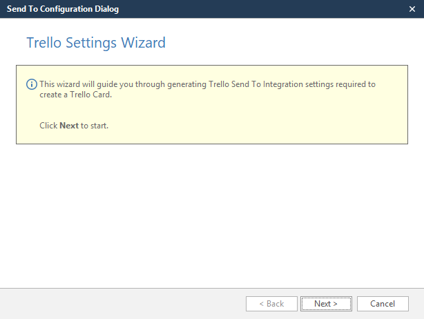 - Click Configure Send To to launch the wizard. The Send To Configuration dialog is displayed.