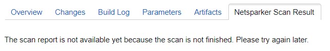 - Click the Netsparker Scan Result tab to view the scan result. If the scan is queued or ongoing, the following message is displayed: ‘The scan report is not available yet because the scan is not finished. Please try again later.’