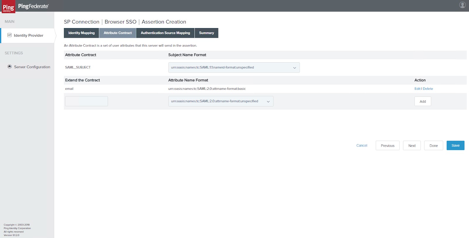 - Click Attribute Contract. The Attribute Contract tab is displayed.