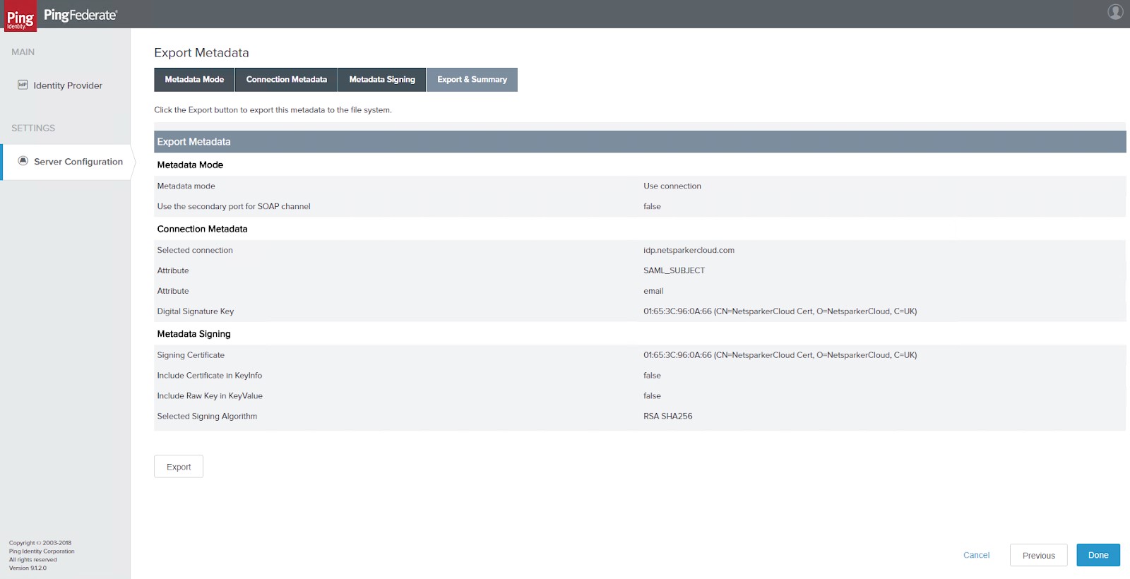 - Complete the instructions in Creating an SP Connection with your IdP PingFederate.