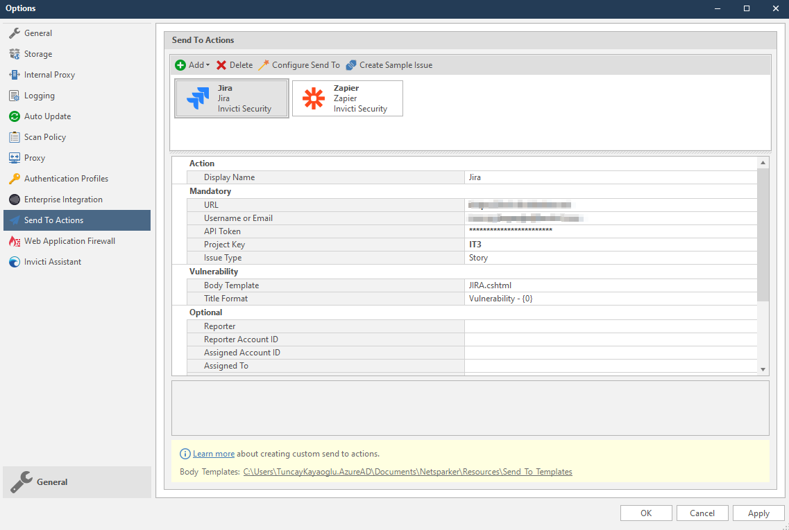 This topic explains how to configure Invicti Standard to send a detected vulnerability to Jira.